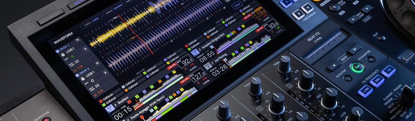 Pioneer XDJ-AZ (near CDJ-3000 workflow). 3kw a side QSC KC12 2026 sound systems.